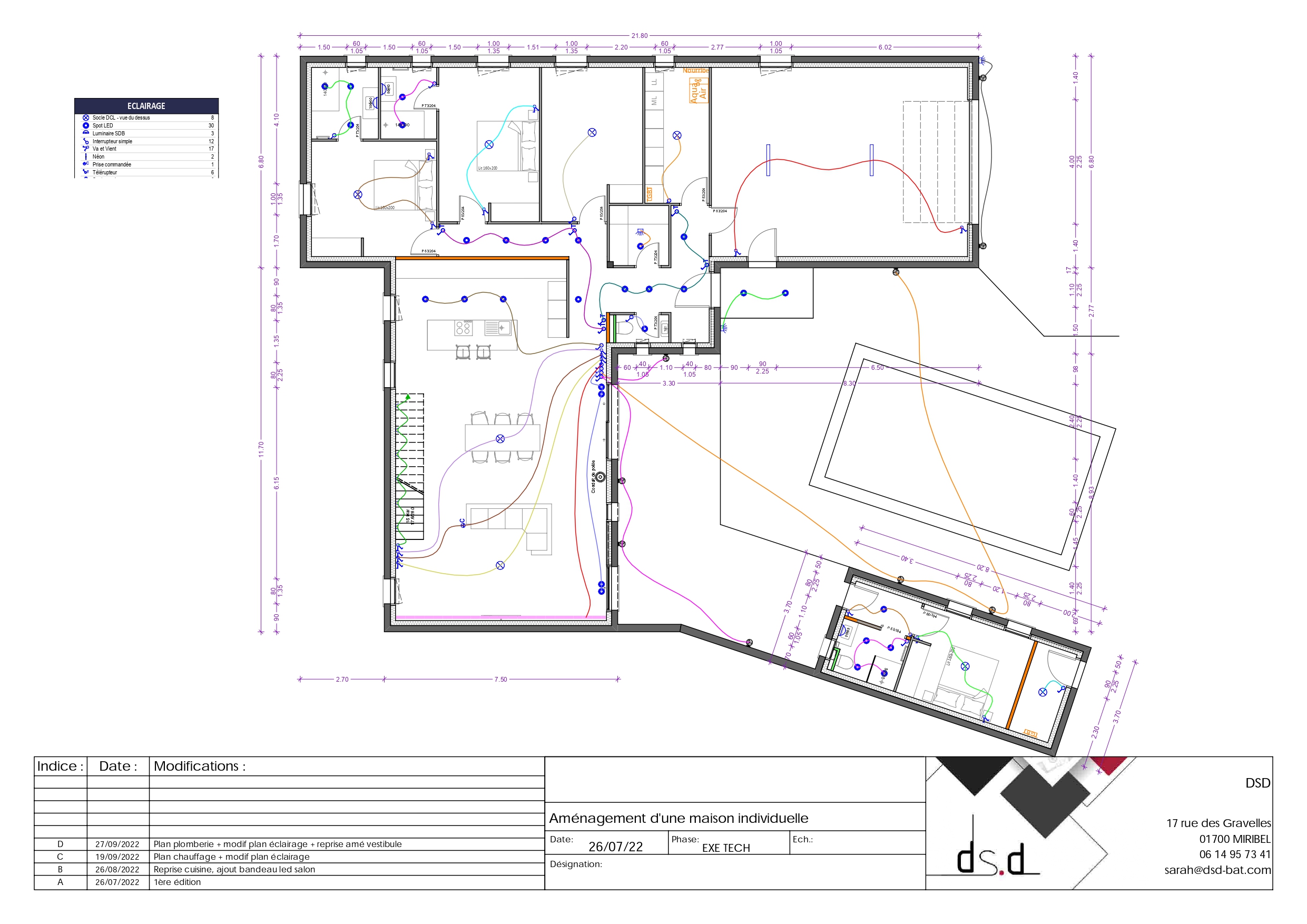 Réalisation de plans électriques (luminaires et prises) pour une maison individuelle en auto-construction.